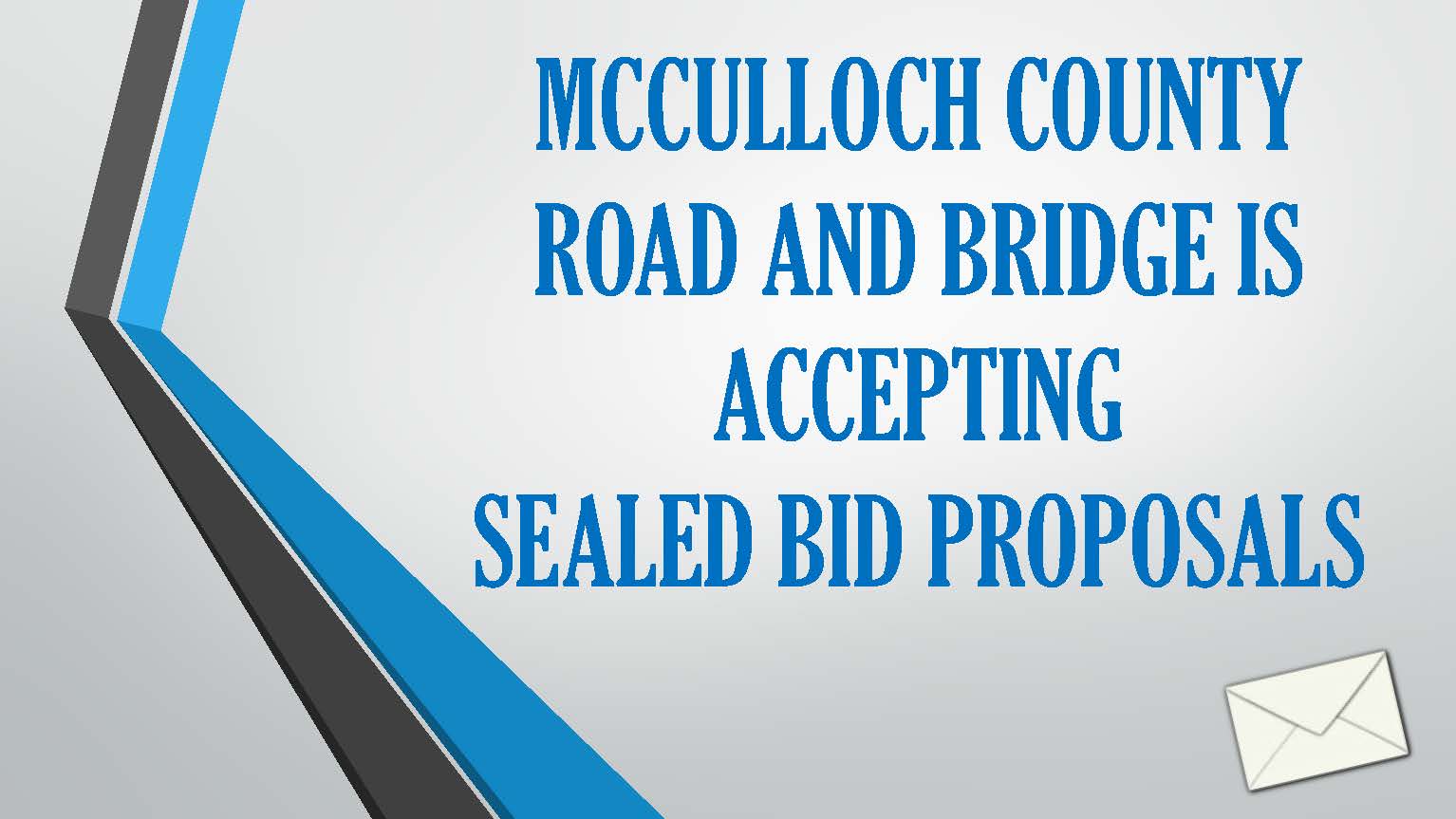 McCulloch County Road and Bridge Department will be accepting sealed bid proposals for contracting of various road related materials beginning November 5,2025 through December 5,2025 at 2pm.